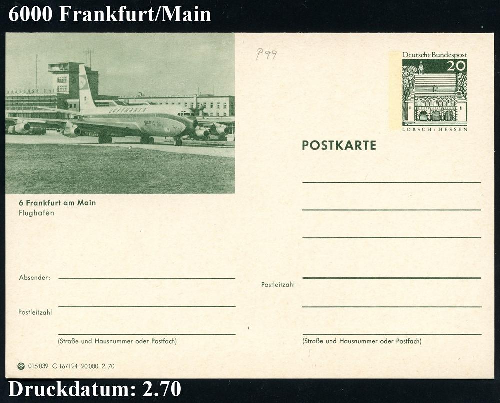 232 | 8 € | 6 Frankfurt/M. Flughafen Rhein-Main : 6 Frankfurt am Main, Flughafen 1969/70 2 verschiedene BiP 20 Pf. Lorsch, grün: Tower mit Lufthansa-Jet , je ungebr. (Einzelverkauf möglich: je 5.- EUR) 2 Belege (Mi.P 90/C 1-7, C 16/124) | ![]() ![]() | |