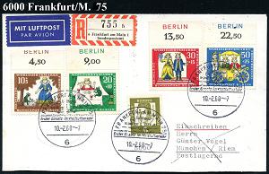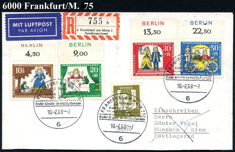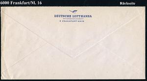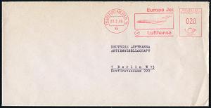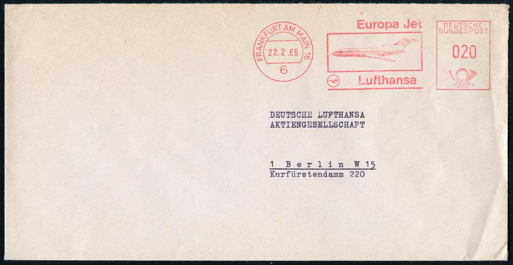 226 | 14 € | 6 Frankfurt/M. Flughafen Rhein-Main : 6 FRANKFURT AM MAIN 16/ Europa Jet/ Lufthansa 1965 (22.2.) AFS (Europa-Jet) rs. Abs.-Vordruck mit DLH-Logo) Fern-Bf. n. West-Berlin (Dü.E-23) | ![]() ![]() | |