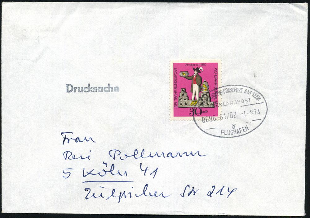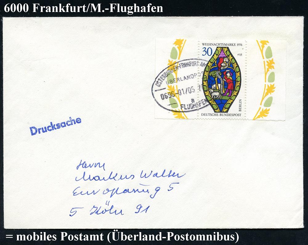 247 | 12 € | 6 Frankfurt/M. Flughafen Rhein-Main : WÜRZBURG-FRANKFURT-MAIN/ ÜBERLANDPOST/ 0870-01/ 01/ FLUGHAFEN 1974 (24.9.) Oval-Steg = mobiles Postamt, Überland-Postomnibus! , klar gest. Inl.-Bf. (Mi.626) | ![]() | |
