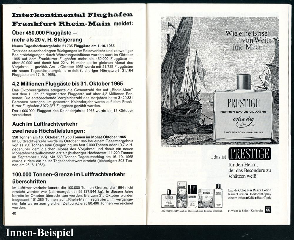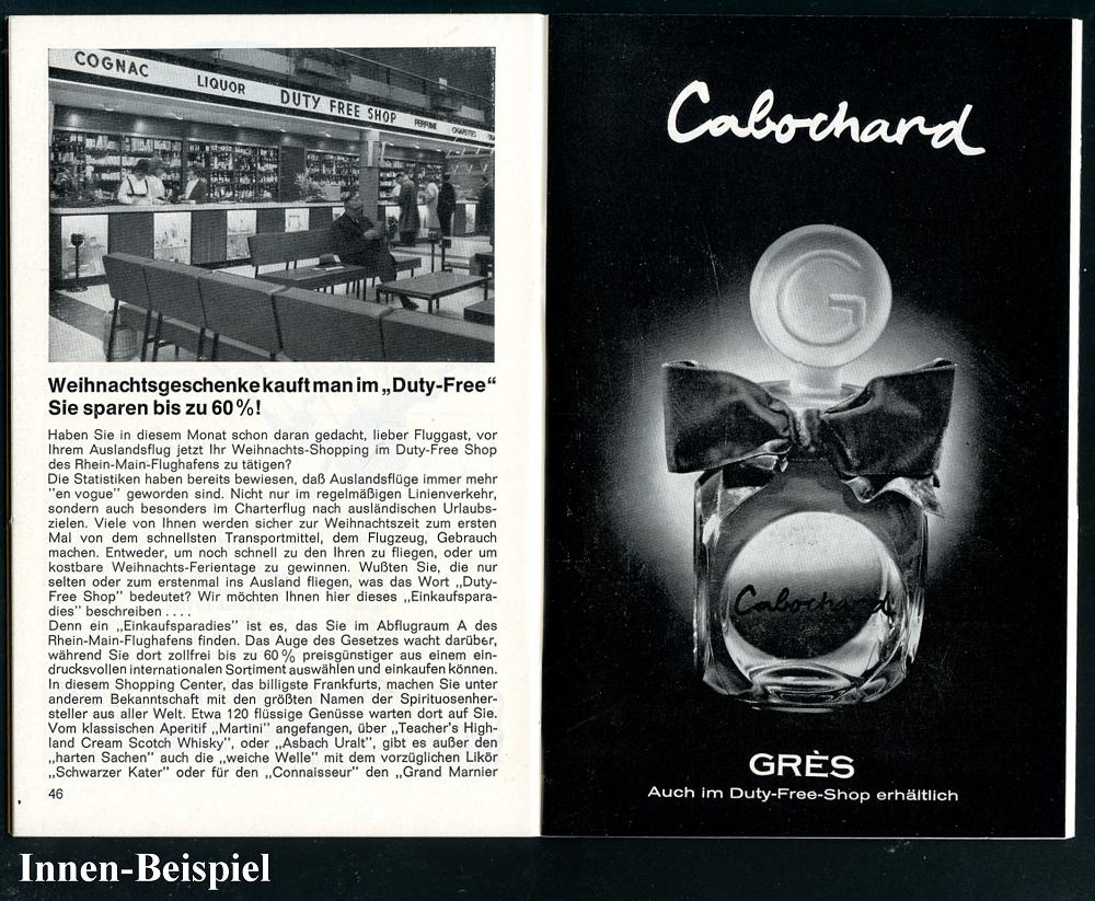 227 | 18 € | 6 Frankfurt/M. Flughafen Rhein-Main : Frankfurt/ Flughafen "Rhein-Main" 1965 (Dez.) orig. Taschenflugplan (Titel Weihnachtsmann im Cockpit) 62 Seiten ,viele Abb. u. Reklame!, druckfrisch | ![]() ![]() ![]() ![]() ![]() | |