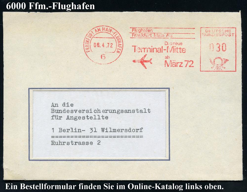 236 | 12 € | 6 Frankfurt/M. Flughafen Rhein-Main : 6 FRANKFURT AM MAIN-FLUGHAFEN/ ..Das neue/ Terminal-Mitte/ ab/ März 72 1972 (8.4.) seltener AFS (Jet) Inl.-Bf. (Dü.E-23CO) | ![]() | |