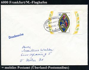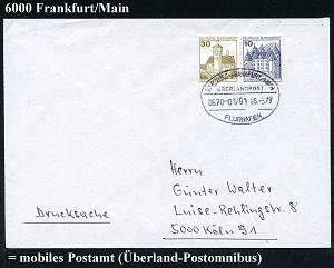 242 | 15 € | 6 Frankfurt/M. Flughafen Rhein-Main : GIESSEN-FRANKFURT-M/ ÜBERLANDPOST/ 0630-08-02/ b/ FLUGHAFEN 1975 (30.1.) Oval-Steg = mobiles Postamt im Überland-Postomnibus! , klar gest. Inl.-Bf. | ![]() | |