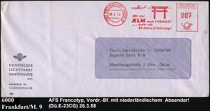 211 | 12 € | 6 Frankfurt/M. Flughafen Rhein-Main : (16) FRANKFURT (MAIN)9/ Mit der/ KLM nach FERNOST.. 1958 (26.3.) AFS (japan. Tor, Jet) KLM-Firmen-Bf. (Dü.E-23) | ![]() | |