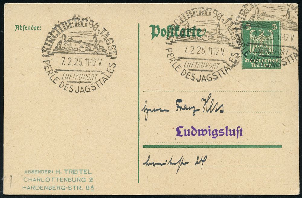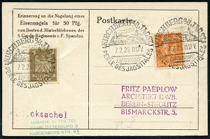 4043 | 25 € | POSTLEITRAUM 7100 (OHNE HEILBRONN u. LUDWIGSBURG) : KIRCHBERG a/ d JAGST/ LUFTKURORT.. 1925 (7.2.) HWSt (Schloß Kirchberg) 3x auf Spenden-Ak.: 50 Pf. Eisenngel für die Interbliebenen des 5. Garte-Regiments Spandau, selten! (Bo.1/ Erstjahr) | ![]() ![]() | |