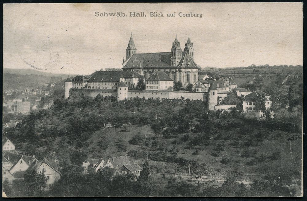 4163 | 15 € | POSTLEITRAUM 7100 (OHNE HEILBRONN u. LUDWIGSBURG) : Schwäbisch Hall 1909 (26.XII.) 1K-Brücke: K. WÜRTTB.BAHNPOST/Z 148 auf EF 5 Pf. Germania auf s/w.-Foto-Ak.: Schwäb. Hall.. Comburg, Ausl.-Karte n. Wien = Inl.-Tarif! (Mi.85 I) | ![]() ![]() | |