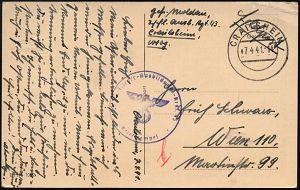 4024 | 15 € | POSTLEITRAUM 7100 (OHNE HEILBRONN u. LUDWIGSBURG) : CRAILSHEIM 1941 (7.4.) 2K-Steg + viol. 1K-HdN: 3. Flieger-Ausbildungs-Regt. 43 + hs. Abs., Feldpost-Oster-Ak. n. Wien | ![]() | |
