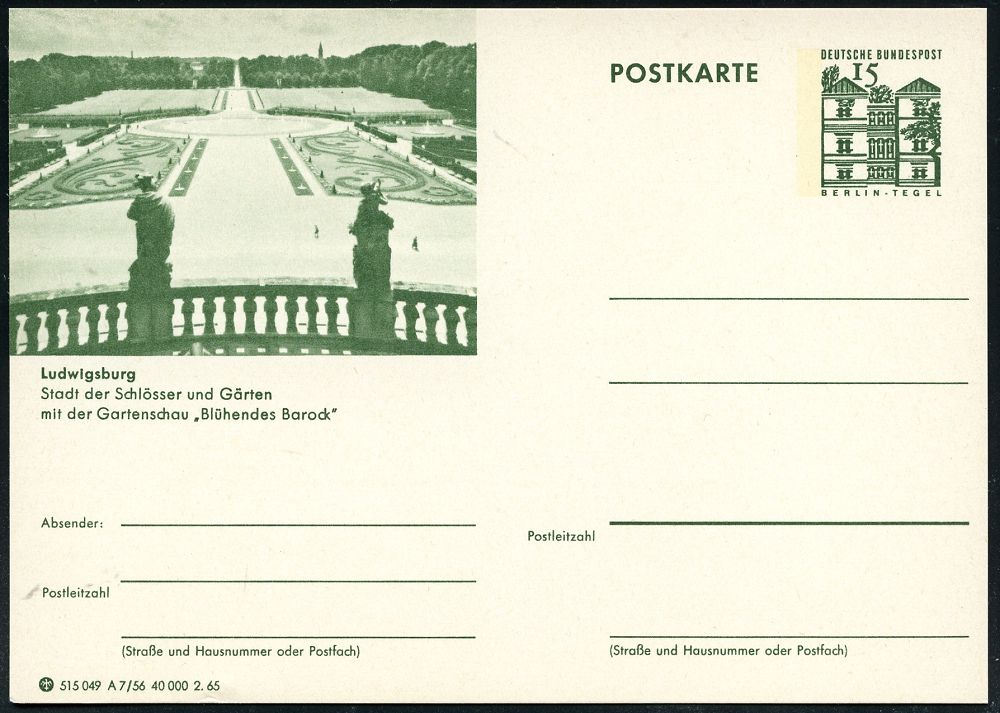 4083 | 12 € | 7140 LUDWIGSBURG : Ludwigsburg 1965 15 Pf. BiP Tegel, grün: Schloß mit Barock-Garten (mit Skulptur etc.) 3 verschied. Ansichten je ungebr., 3 Belege (Mi.P 86-A 7/54 bis 55, 56) | ![]() ![]() ![]() | |
