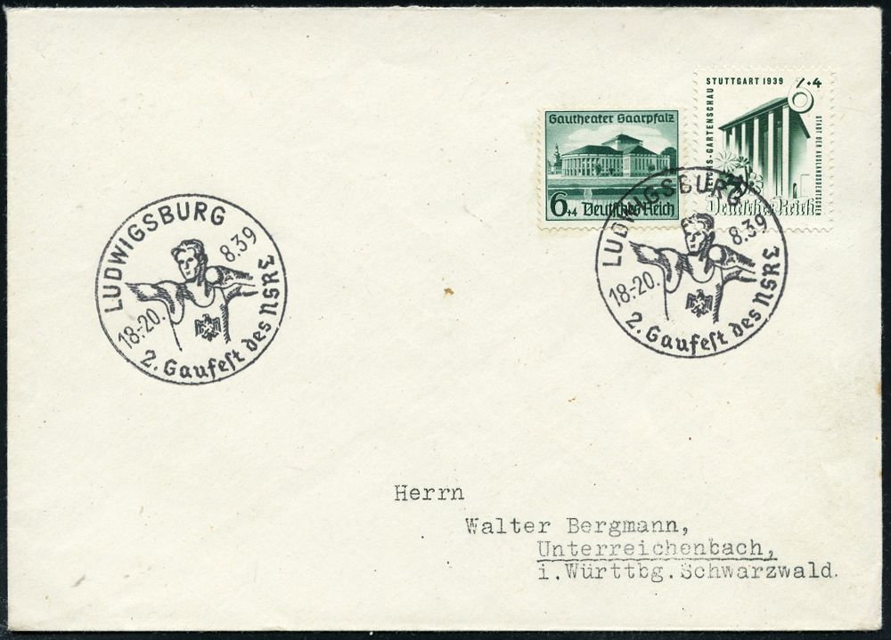 4075 | 18 € | 7140 LUDWIGSBURG : LUDWIGSBURG/ 2.Gaufest des NSRL 1939 (Aug.) SSt (Kugelstoßer) 2x glasklar auf 12 Pf.-Frankatur (Mi.673, 693 + 11,50 EUR) portorichtigem Fern-Bf. (Bo.6) | ![]() | |