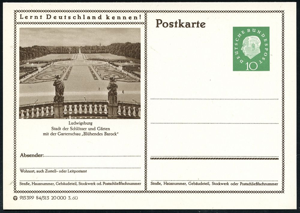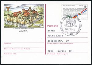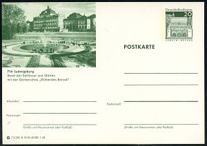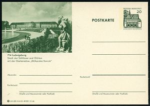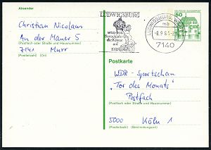 4091 | 5 € | 7140 LUDWIGSBURG : 7140 LUDWIGSBURG,WÜRTT 1/ mb/ setzt dem/ Barockjahr/ die Krone/ auf 1981 (8.9.) MWSt (Putte mit Krone) Bedarfs-Kt. (Bo.56 A) | ![]() | |