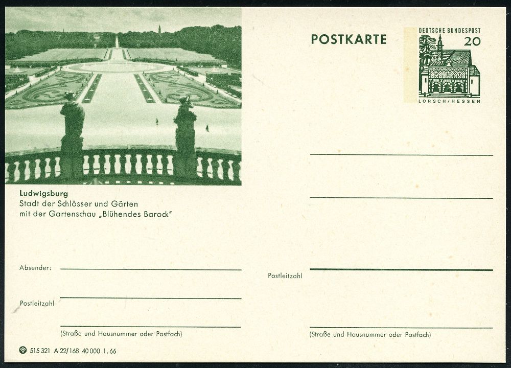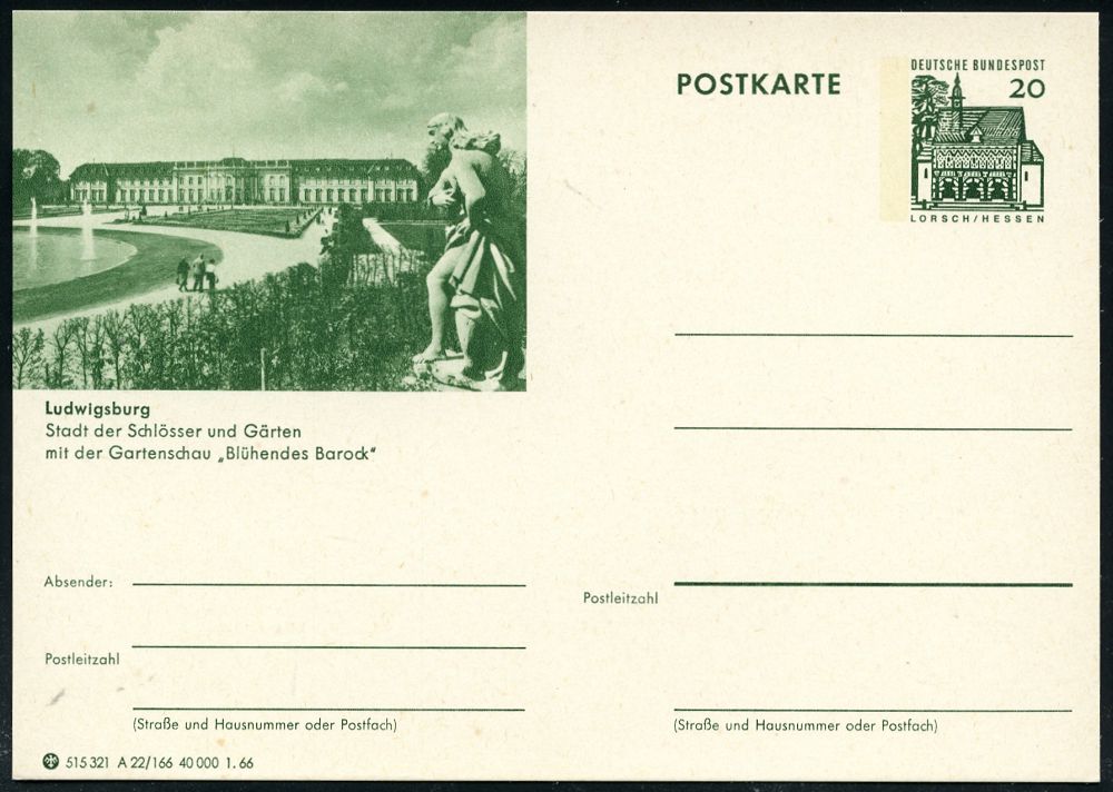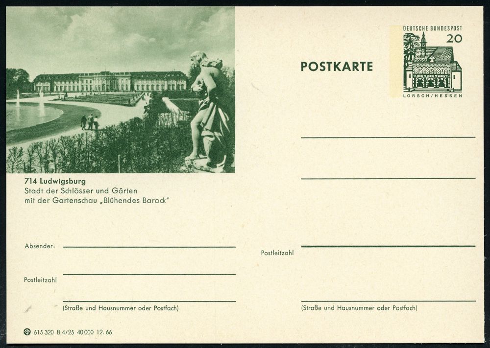 4085 | 12 € | 7140 LUDWIGSBURG : 714 Ludwigsburg 1966 20 Pf. BiP Lorsch, grün: Schloß u. Barock-Garten (mit Skulptur) je ungebr. 3 Belege (Mi.P 89/B 4-25 bis 27) | ![]() ![]() ![]() | |