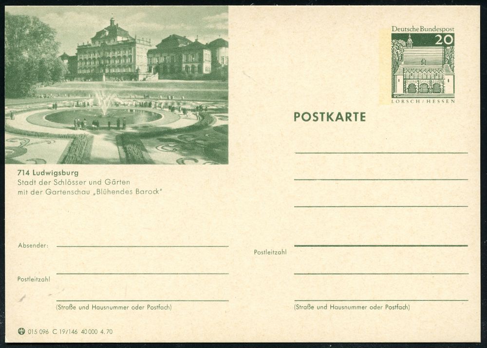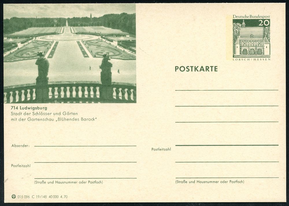 4087 | 12 € | 7140 LUDWIGSBURG : 714 Ludwigsburg 1970 20 Pf. BiP Lorsch, grün: Schloß u. Barock-Garten, 3 verschiedene Ansichten , je ungebr., 3 Belege (Mi.P 99/146 bis 148) | ![]() ![]() ![]() | |