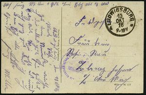 4068 | 14 € | 7140 LUDWIGSBURG : LUDWIGSBURG/ d* 1916 (13.10.) 1K auf s/w.-Foto-Ak.: Train-Kaserne + hs. ".. Ers. Abt. 13.." + viol. 1K-HdN, Feldpost-Kt. | ![]() ![]() | |