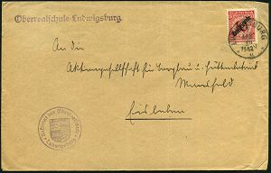 4070 | 14 € | 7140 LUDWIGSBURG : LUDWIGSBURG/ ** 1926 (7.4.) 1K auf EF 10 Pf. Dienst + viol. HdN: Rektorat der Oberrealschule/ Ludwigsburg (Wappen) Fern-Bf. (Mi.D 101 EF) | ![]() | |