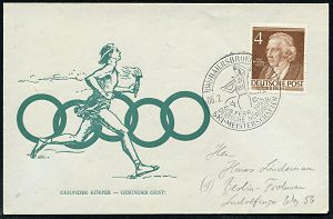 4231 | 16 € | POSTLEITRAUM 7200 (OHNE TUTTLINGEN) : (14b) BAIERSBRONN (WÜRTT)/ DEUTSCHE NORDISCHE/ SKI-MEISTERSCHAFTEN 1953 (6.2.) SSt (Skiläufer) klar gest. Olympia-SU. (Fackelläufer) n. West-Berlin ohne 2 Pf. Notopfer (Bo.3 , 6.2. = Eröffnungstag) | ![]() | |