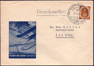 4234 | 16 € | POSTLEITRAUM 7200 (OHNE TUTTLINGEN) : (14b) BAIERSBRONN (WÜRTT)/ ..Wintersport 1953 (27.4.) HWSt (Brunnen zw.Tannen) auf Reklame-Bf.: SKIFABRIK HUGO SCHELKLE (3 Ski etc.) Inl.-Drs.-Bf. (Bo.2) | ![]() | |