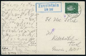 4405 | 16 € | POSTLEITRAUM 7200 (OHNE TUTTLINGEN) : Zavelstein/ Calw Land 1931 (3.3.) blauer Doppel-Ra.2 = PSt.II + 1K-Brücke: CALW/ * (Land) * , s/w.-Foto-Ak.: Bad Teinach mit Burgruine Zavelstein, Text in S t e n o ! (Luftbild) n. Kitzbühel, Tirol = Inl.-Tarif! | ![]() ![]() | |