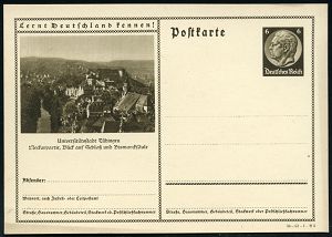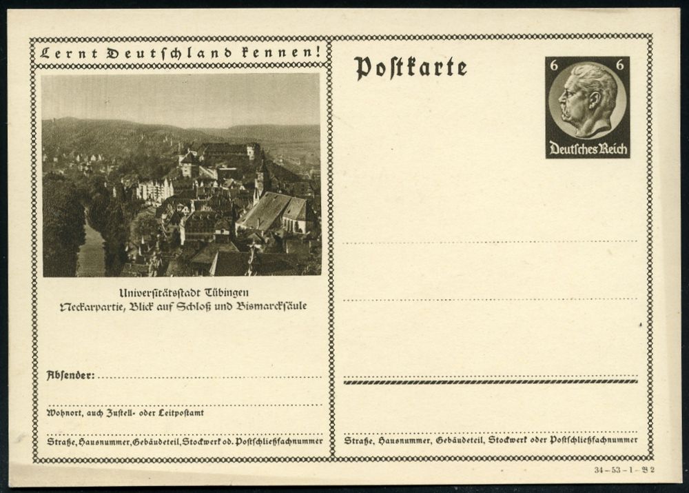 4557 | 10 € | 7400 TÜBINGEN : Tübingen 1934 6 Pf. BiP Hindenbg., braun: Universitässtadt.. Blick auf Schloß u. Bismarcksäule , ungebr. (Mi.P 236/34-53-1-B 2) | ![]() | |