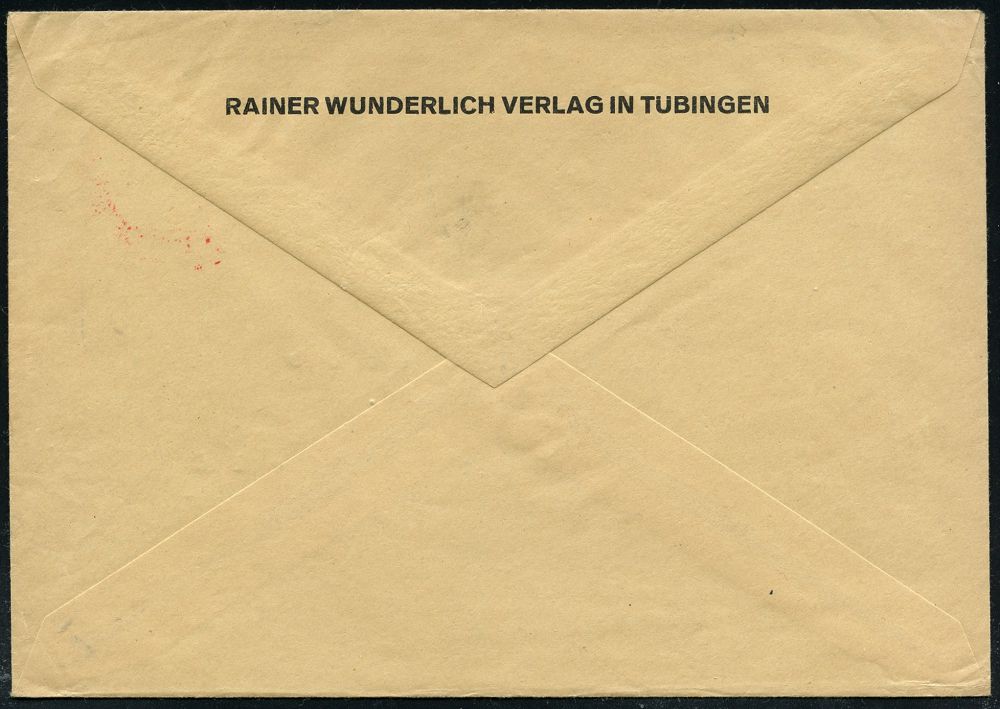 4573 | 8 € | 7400 TÜBINGEN : TÜBINGEN 1/ 4 RPf./ Gebühr bezahlt 1933 (9.9.) 1K-Brücken-PFS mit Wertziffer ohne Uhrzeit , rs. Abs.-Vordruck: RAINER WUNDERLICH VERLAG.. (Dü.A-5, Nr.25) | ![]() ![]() | |