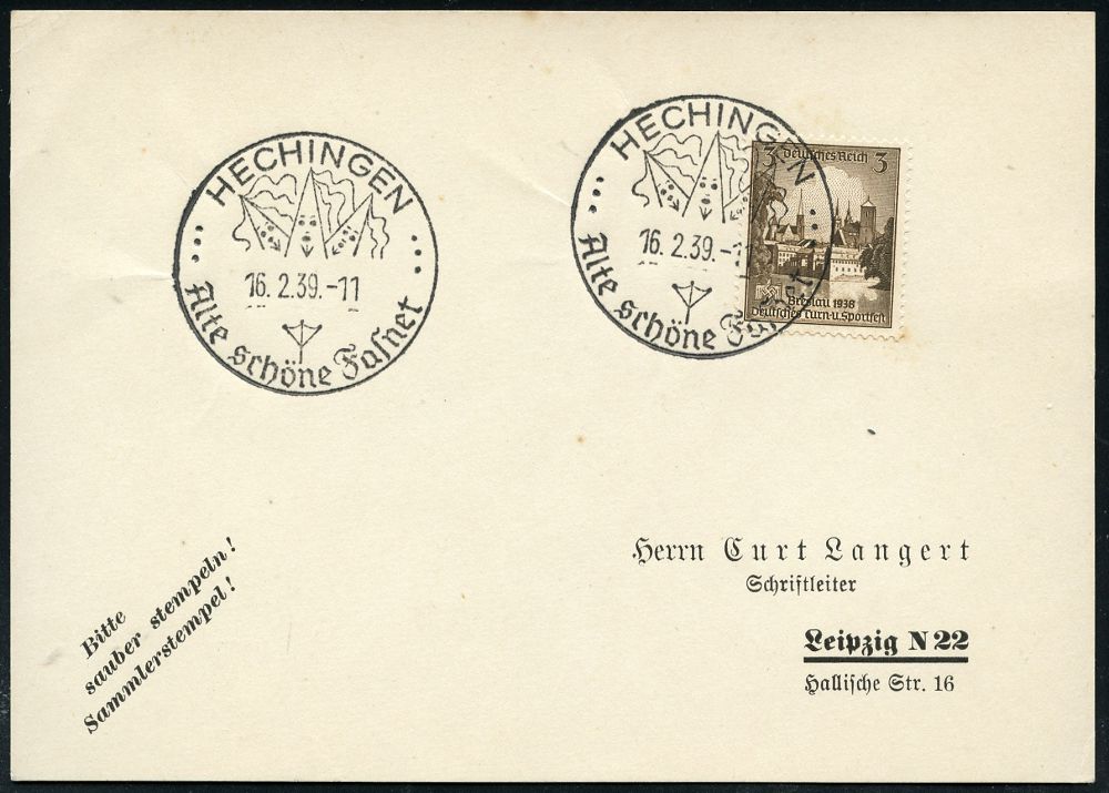 4648 | 18 € | POSTLEITRAUM 7400 (OHNE REUTLINGEN u. TÜBINGEN) : HECHINGEN/ Alte schöne Fasnet 1939 (16.2.) seltener HWSt (3 Masken-Rätschen) klar gest. Inl.-Karte, nur kurz Anfang 1939 verwendet! (Bo.3) | ![]() | |