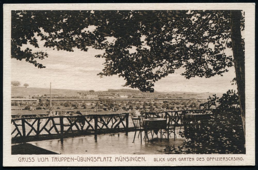 4676 | 13 € | POSTLEITRAUM 7400 (OHNE REUTLINGEN u. TÜBINGEN) : MÜNSINGEN (WÜRTT.)/ *ÜBUNGSPLATZ* 1913 (19.8.) 1K = Hauspostamt Truppenübungsplatz auf monochromer Foto-Ak.: BLICK VOM GARTEN DES OFFIZIERSCASINO n. Stuttgart | ![]() ![]() | |