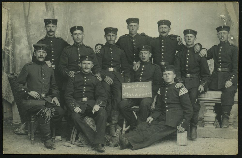 4680 | 14 € | POSTLEITRAUM 7400 (OHNE REUTLINGEN u. TÜBINGEN) : MÜNSINGEN (WÜRTT.)/ °ÜBUNGSPLATZ° 1914 (30.8.) 1K auf individueller s/w.-Foto-Ak.: Heimat-Brüder in Schwäb. Sibirien (Gruppen-Foto) hs. Abs.: "I R D 127..", klar gest., frühe Feldpost-Kt. (n. Schleswig) | ![]() ![]() | |