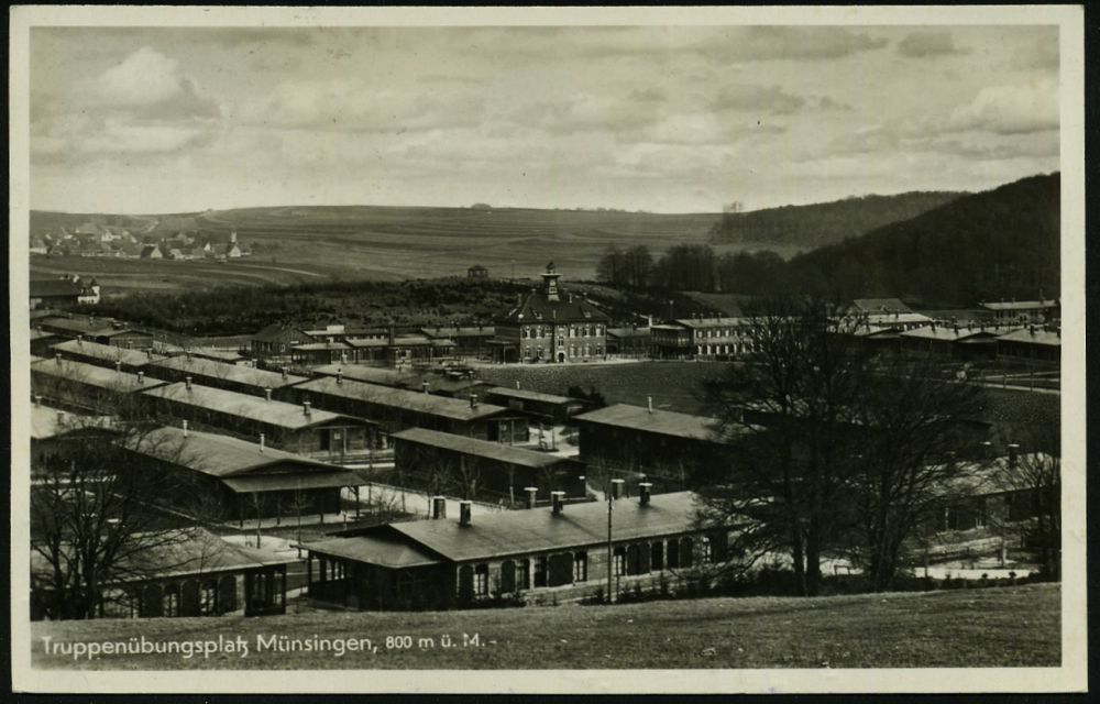 4702 | 14 € | POSTLEITRAUM 7400 (OHNE REUTLINGEN u. TÜBINGEN) : MÜNSINGEN (WÜRTT.)/ * ÜBUNGSPLATZ * 1937 (16.7.) alter 1K = Hauspostamt Truppenübungsplatz (Mi.48) auf EF 6 Pf. Hindenbg. , s/w.-Foto-Bedarfs-Ak: Übungsplatz mit Baracken (Mi.516) | ![]() ![]() | |
