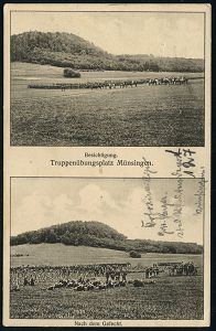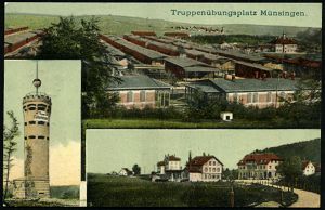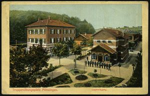 4673 | 12 € | POSTLEITRAUM 7400 (OHNE REUTLINGEN u. TÜBINGEN) : MÜNSINGEN (WÜRTT.)/ *TRUPPENÜBUNGSPLATZ* 1912 (7.7.) 1K = Hauspostamt Truppenübungsplatz auf Color-Foto-Ak.: Truppenübungsplatz Münsingen (3 Ansichten inkl. Falkenhausen-Thurm) n. Oberstetten (Mi.85 I) | ![]() ![]() | |
