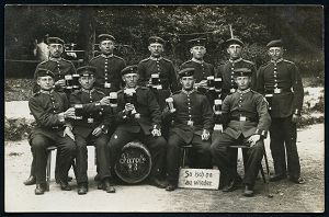 4696 | 14 € | POSTLEITRAUM 7400 (OHNE REUTLINGEN u. TÜBINGEN) : MÜNSINGEN (WÜRTT.)/ *ÜBUNGSPLATZ* 1916 (6.5.) 1K (gering nicht voll) auf individueller s/w.-Feldpost-Foto-Ak.: Soldatengruppe mit Pickelhauben u. Trommel n. Nürtingen | ![]() ![]() | |