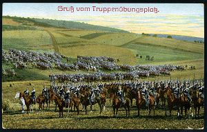 4674 | 15 € | POSTLEITRAUM 7400 (OHNE REUTLINGEN u. TÜBINGEN) : MÜNSINGEN (WÜRTT.)/ *ÜBUNGSPLATZ* 1912 (22.8.) 1K = Hauspostamt Truppenübungsplatz + hs. Vermerk: "Soldatenkarte Eigene Angelegenheit des Empfängers" auf Color-Foto-Ak.: Gruß vom Truppenübungsplatz mit Kavallerie-Übung, klar gest. portofreie Manöver-Kt. n. Weblingen | ![]() ![]() | |