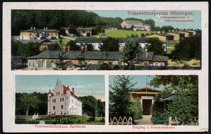 4695 | 12 € | POSTLEITRAUM 7400 (OHNE REUTLINGEN u. TÜBINGEN) : MÜNSINGEN (WÜRTT.)/ *ÜBUNGSPLATZ* 1916 (11.4.) 1K mit Kleeblat-Sternen = Hauspostamt Truppenübungsplatz (2x , 1x nicht voll) auf Color-Feldpost-Ak.: Offiziersbaracken, Kommandantenhaus u. Kommandantur (3 Ansichten) n. Stuttgart (Verlag H. Sting, Tübingen) | ![]() ![]() | |