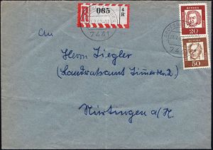 4608 | 16 € | POSTLEITRAUM 7400 (OHNE REUTLINGEN u. TÜBINGEN) : 746 BALINGEN/ BA-PHILA 70.. 1970 (7.6.) SSt + Sonder-RZ: 746 Balingen/BA-PHILA 70 (NEZ-Kat.Nr.23) klar gest. Inl.-R-Bf. (Bo.8) | ![]() | |