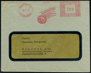 4809 | 20 € | POSTLEITRAUM 7400 (OHNE REUTLINGEN u. TÜBINGEN) : TAILFINGEN/ (OA BALINGEN)/ "Conzelma"/ ..gerippte/ Unterkleidung/ Gebr.Conzelmann 1933 (20.7.) AFS Francotyp "Mäanderrechteck" (Frau in Unterwäsche) klar gest. Fern-Bf. (Dü.E-2CEh) | ![]() | |