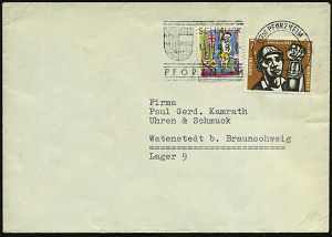 5220 | 12 € | 7530 PFORZHEIM : PFORZHEIM/ SCHMUCK U.UHREN 1962 (27.6.) aptierter HWSt = alte PLGZ entfernt (Wappen) Firmen-Bf. (Bo.27 aptiert) | ![]() | |