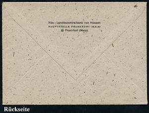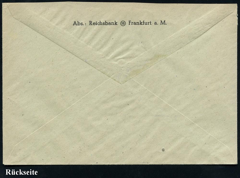 467 | 18 € | 6 Frankfurt/M. Post-Freistempel : FRANKFURT (MAIN)*2II 1946 (10.4.) seltener, aptierter PFS 24 Pf. = Reichsadler u. Hakenkreuz abgeschliffen = Notmaßnahme! (wie immer etw. schwach) Dienst-Bf.: REICHSBANK an Reichsbank (Hanau) Gelnhausen (Dü.D-8, Nr.242) | ![]() | |