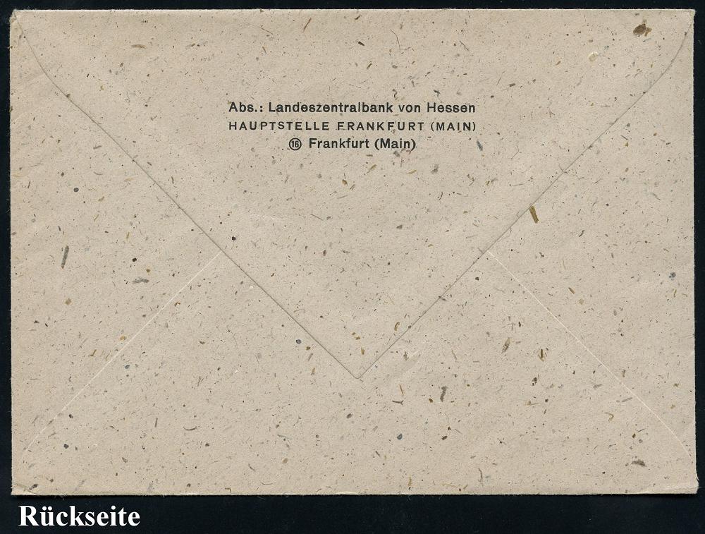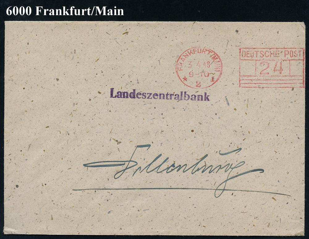 470 | 14 € | 6 Frankfurt/M. Post-Freistempel : FRANKFURT (MAIN)/ *2I/ DEUTSCHE POST 1948 (3.4.) aptierter PFS 24 Pf. "Adlerkopf/Hakenkreuz" = entfernt + 4 Linien = Notmaßnahme! , rs. Abs.-Vordruck: Landeszentralbank von Hessen, HAUPTSTELLE.., Fern-Bf. (Dü.D-10, Nr.248) | ![]() ![]() | |