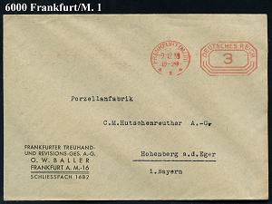 520 | 8 € | 6 Frankfurt/M. Post-Freistempel : FRANKFURT (MAIN)/ *1*/ DEUTSCHES REICH 1933 (9.12.) PFS 3 Pf. auf Firmen-Bf.: FRANKFURTER TREUHAND U. REVISIONS-GES. A.G., O. W. BALLER.., Inl.-Drs. (Dü.D-4) | ![]() ![]() | |