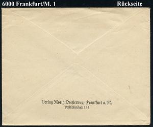 521 | 6 € | 6 Frankfurt/M. Post-Freistempel : FRANKFURT (MAIN)/ *1*/ DEUTSCHES REICH 1934 (14.8.) PFS 4 Pf. "Achteck" , rs. Abs.-Vordruck: Verlag Moritz Diesterweg.. (Dü.D-4) | ![]() ![]() ![]() | |