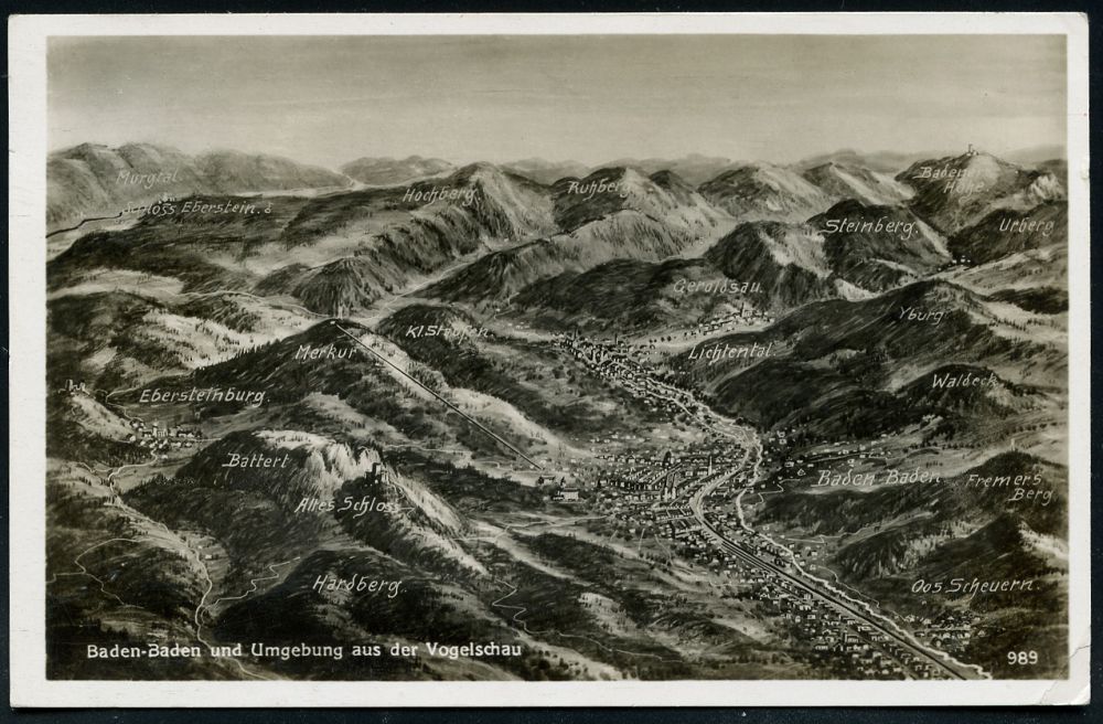 5064 | 12 € | POSTLEITRAUM 7500 (OHNE KARLSRUHE u. PFORZHEIM) : BADEN-BADEN 1/ r/ Spielbank/ ..Ganzjärig/ geöffnet! 1937 (17.8.) MWSt (Roulette) auf s/w.-Künstler-Ak.: Baden-Baden aus der Vogelschau, Bedarf (Bo.23 A II , nur 1937-39 verwendet) | ![]() ![]() | |