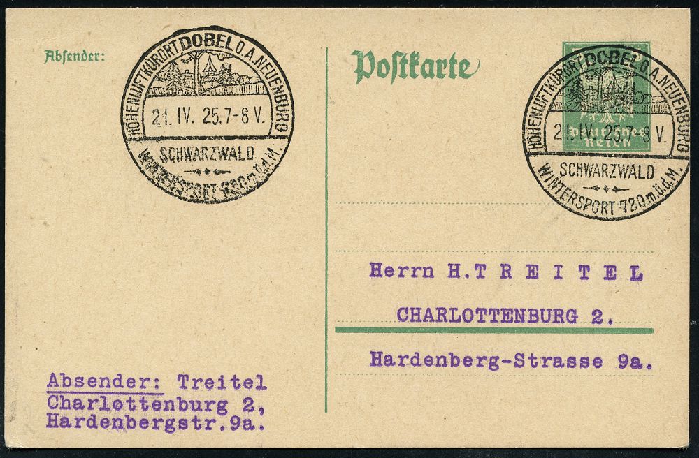 5116 | 18 € | POSTLEITRAUM 7500 (OHNE KARLSRUHE u. PFORZHEIM) : DOBEL O.A.NEUENBURG/ LUFTKURORT.. 1925 (21.IV.) HWSt (Ortsbild) 2x klar auf Inl.-Karte (Bo.1, nur 1925-26 verwendet) | ![]() | |