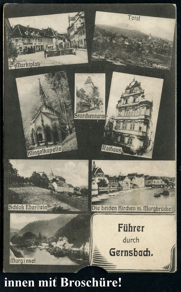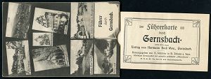 5130 | 25 € | POSTLEITRAUM 7500 (OHNE KARLSRUHE u. PFORZHEIM) : Gernsbach 1900 (ca.) s/w.-Foto-Ak.: Führer durch Gernsbach mit 8 Mikroskop-Detailansichten , innenBroschüre "Führerkarte durch Gernsbach", 14 Text- u. Reklameseiten, u.a. Apotheke, Gasthaus Lautenfelsen etc. rs. Patent-Nr. 265171, ungebr. | ![]() ![]() ![]() | |