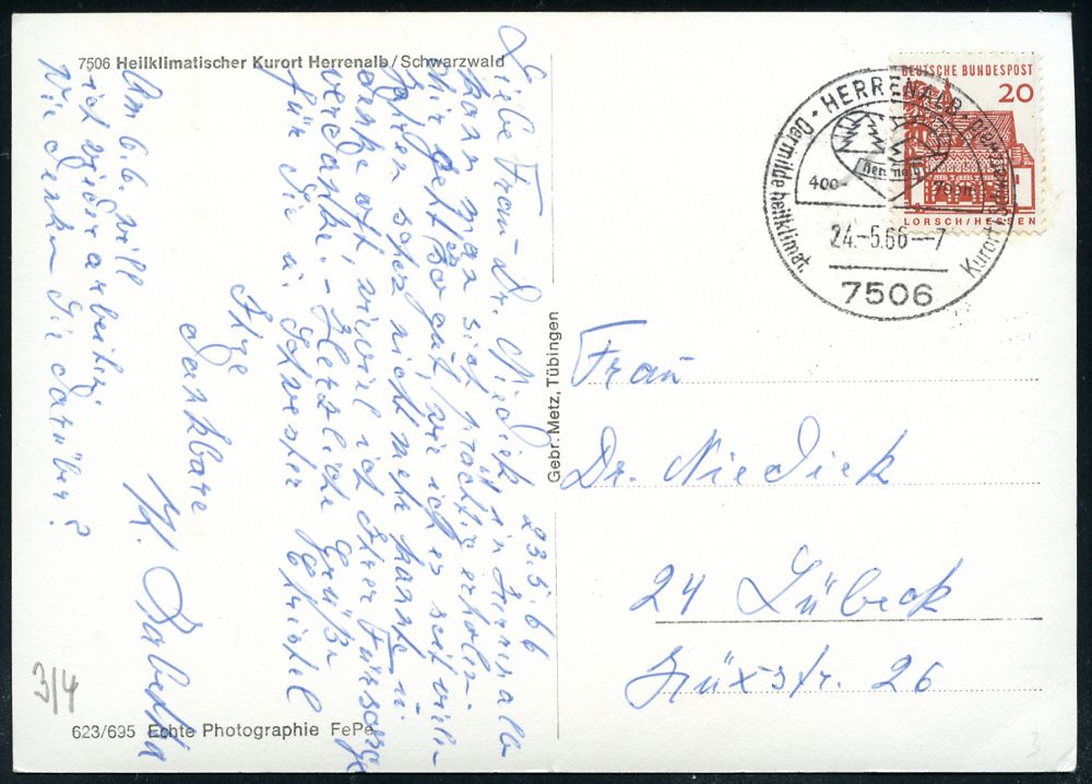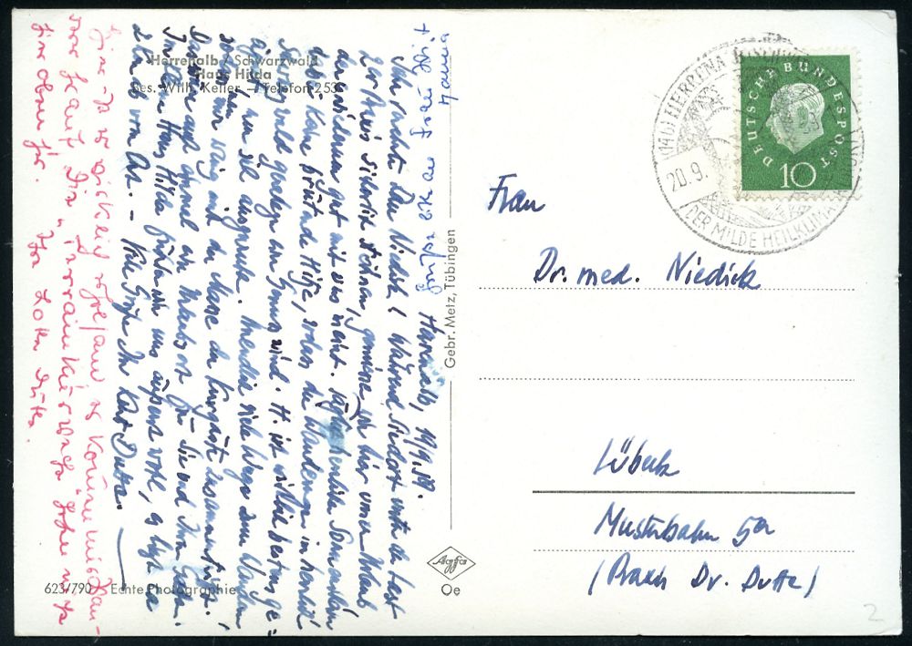 5138 | 10 € | POSTLEITRAUM 7500 (OHNE KARLSRUHE u. PFORZHEIM) : (14b) HERRENALB/ DER MILDE HEILKLIMAT.KURORT 1959 (20.9.) HWst auf s/w.-Foto-Ak.: Haus Hilda.. , Bedarf (Bo.2) | ![]() ![]() | |
