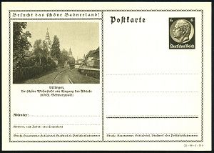 5119 | 10 € | POSTLEITRAUM 7500 (OHNE KARLSRUHE u. PFORZHEIM) : Ettlingen 1935 6 Pf. Hindenbg., braun, Sonderform "Besucht das schöne Badnerland!" (Kirche, Bahngleise) ungebr. (Mi.P 236-35-68) | ![]() | |