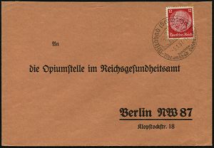 5204 | 40 € | POSTLEITRAUM 7500 (OHNE KARLSRUHE u. PFORZHEIM) : Wildbad (Schwarzw)/ ..Rheumabad Luftkurort 1937 (5.1.) HWSt auf seltenem, rosa Dienstbf.: An die Opiumstelle im Reichsgesundheitsamt Berlin.. (Berlin NW 87) sehr seltene Verwendung! (Bo.4 , Letztjahr) | ![]() ![]() | |