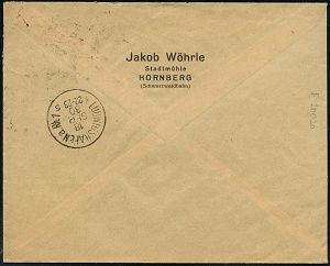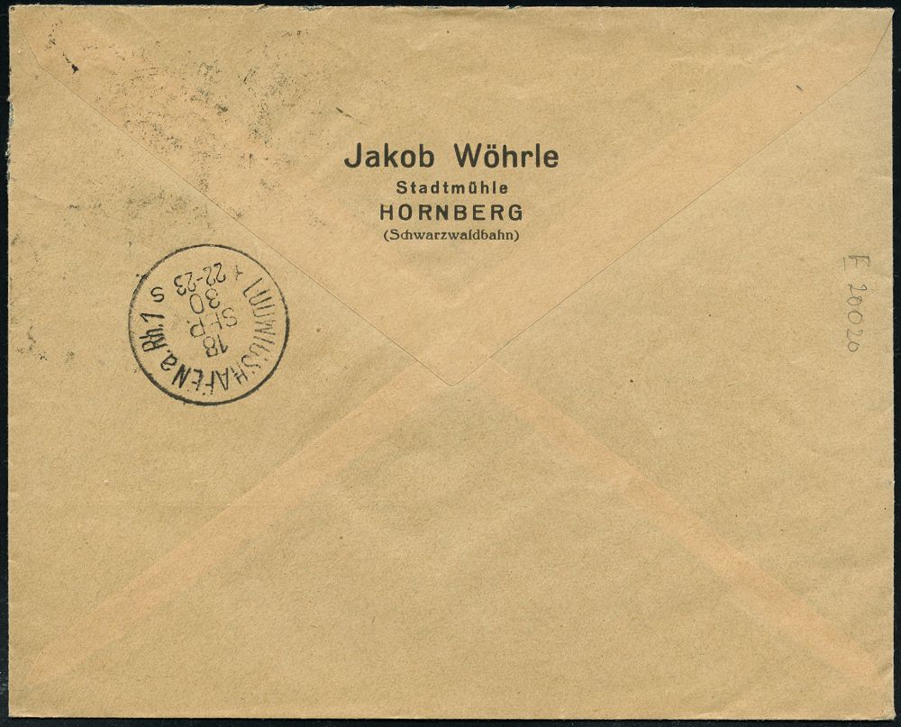 5404 | 20 € | POSTLEITRAUM 7700 (OHNE SINGEN) : HORNBERG/ (SCHWARZWALDBAHN)/ SCHNELLZUGSTATION/ JDYLLISCHER LUFKURORT 1930 (18.9.) HWSt 2x (1x gering nicht voll) auf 20 Pf. Ebert u. 25 Pf. Hindenbg. + RZ: Hornberg/(Schwarzwaldbahn) (Mi.415/16) Fern-R-Bf. (rs. Abs. J. Wöhle, Stadtmühle) n. Ludwigshafen (Bo.1) | ![]() ![]() | |