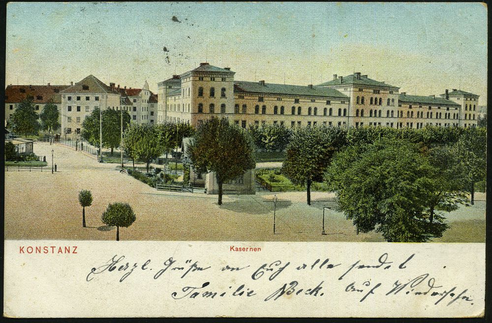 5425 | 16 € | POSTLEITRAUM 7700 (OHNE SINGEN) : Konstanz 1906 (20.4.) Color-Foto-Ak.: Kasernen = Inf. Rgt. "Kaiser Friedrich III." Nr. 114 , Frankatur Schweiz 5 C. Ziffer, Aufgabe: KREUZLINGEN, Bedarfs-Kt. n. Zürich (Mi.84) | ![]() ![]() | |