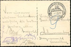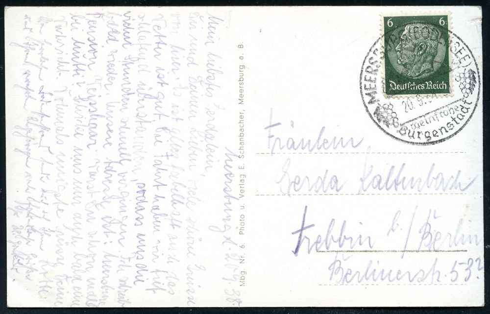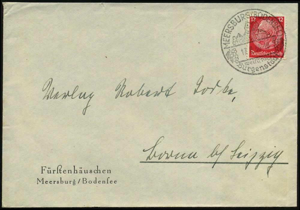 5477 | 15 € | POSTLEITRAUM 7700 (OHNE SINGEN) : MEERSBURG (BODENSEE)/ weinfrohe/ Burgenstadt 1938 (17.8.) HWSt (Schloß, 2 Weintrauben) Vordruck-Bf.: Fürstenhäuschen Meersburg.. n. Borna (Bo.2) | ![]() | |