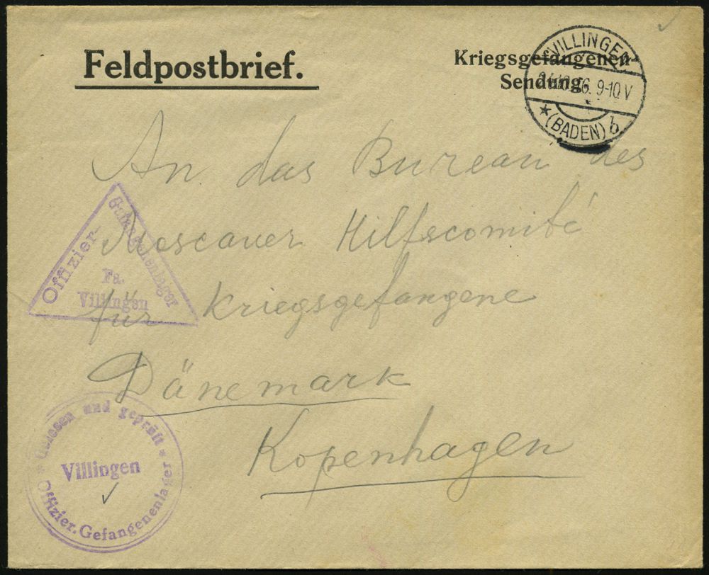 5536 | 22 € | POSTLEITRAUM 7700 (OHNE SINGEN) : VILLINGEN/ *(BADEN)b 1917 (11.6.) 1K-Brücke + viol. Dreieck: Offizier-/Gef.Lager/Fa/Villingen + Zensur-2K: Gelesen u. geprüft.., Kriegsgefangenen-Vordruck-Bf. "Feldpostbrief" an das Moskauer Hilfskomitee, Kopenhagen (Wo.18 b + d , 100 Pkte.!) | ![]() | |