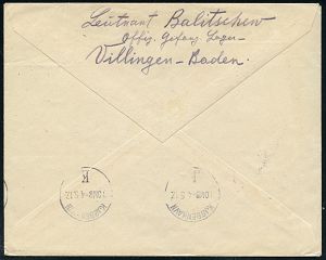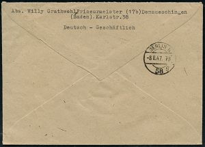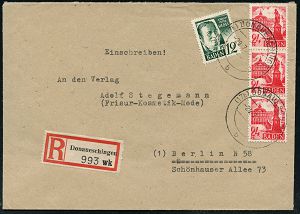 5381 | 30 € | POSTLEITRAUM 7700 (OHNE SINGEN) : (17b) DONAUESCHINGEN/ b 1947 (29.7.) gr. 2K-Steg + postamtlich weiterverwendeter Selbstbucher-RZ: Donaueschingen/w k = W ehrkreis-Kommando, = Notmaßnahme, Fern-R-Bf. n. Ost-Berlin ! (Mi.4, 3x 8) | ![]() ![]() | |