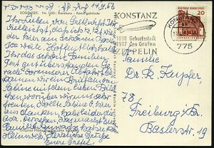 5447 | 12 € | POSTLEITRAUM 7700 (OHNE SINGEN) : 775 KONSTANZ 1/ ak/ 1838 Geburtsstadt/ 1917 des Grafen/ ZEPPELIN 1967 (14.4.) MWSt = Zeppelin , klar gest. s/w.-Foto-Ak.: Konzilsgebäude, Bedarf (Bo.32 A) | ![]() ![]() | |