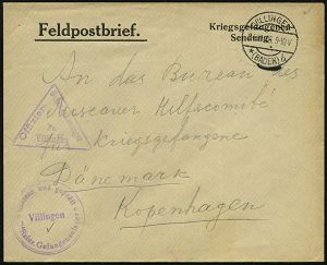 5537 | 25 € | POSTLEITRAUM 7700 (OHNE SINGEN) : VILLINGEN/ *(BADEN)b 1917 (1.5.) 1K-Brücke + roter. Dreieck: Offizier-/Gef.Lager/Fa/Villingen + Zensur-2K: Gelesen u. geprüft.., seltener Kgf.-Vorduck-Bf. an das Moskauer Hilfskomitee, Kopenhagen, rs. AS. (Wo.18 b + d , 100 Pkte.!) | ![]() ![]() | |